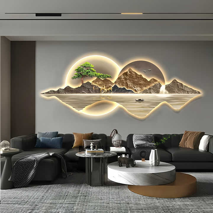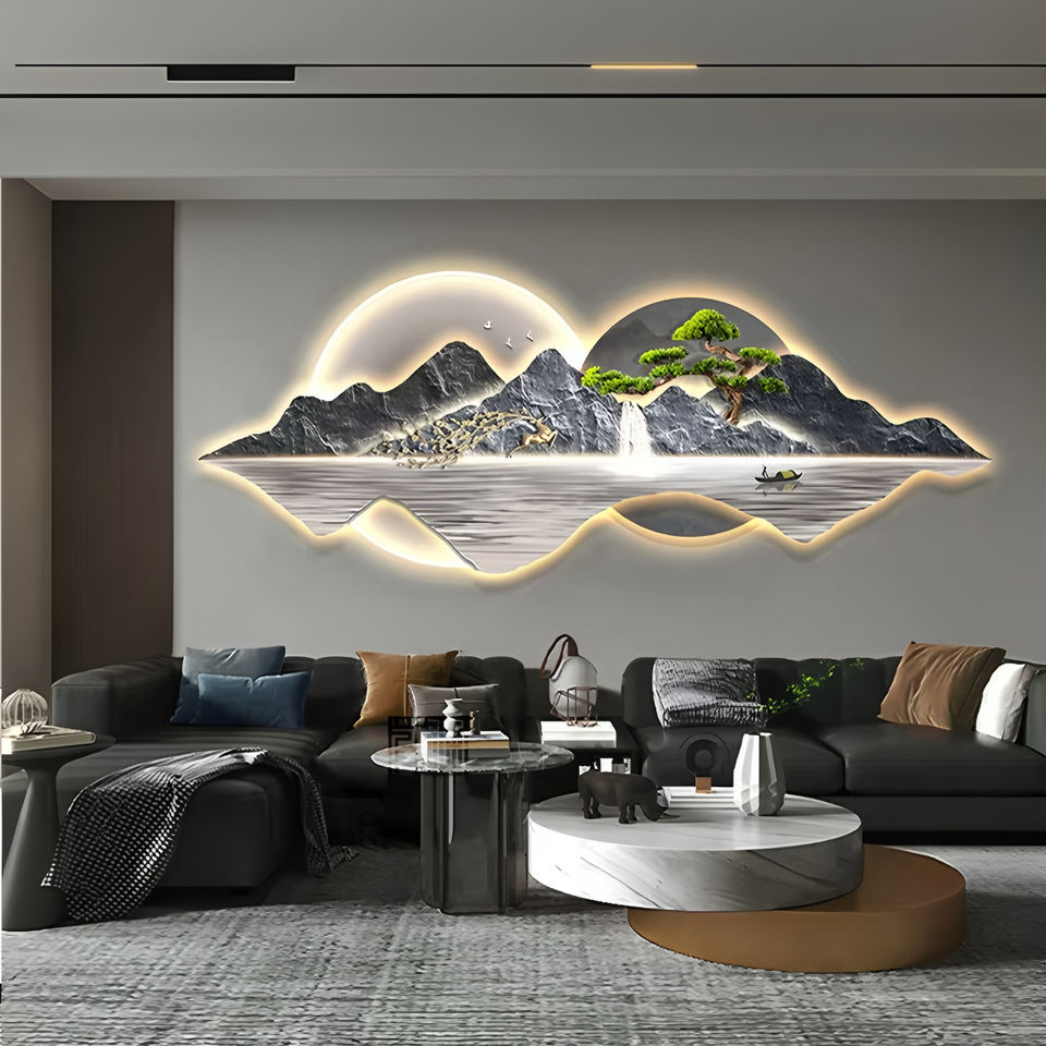 Moderno soggiorno pittura decorativa paesaggio murale con luce pittura diamantata incisione laser cristallo porcellana pittura