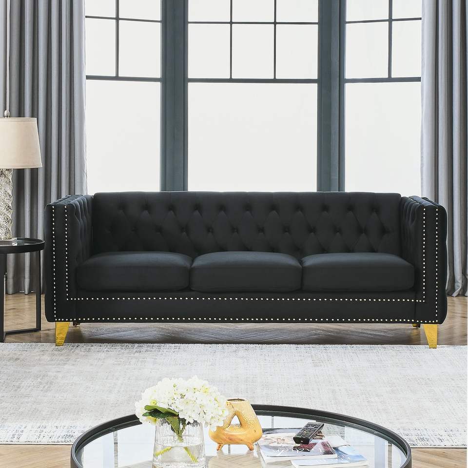 Divano Moderno per Soggiorno in Velluto Trapuntato con Braccioli Quadrati e Bottoni Imbottiti 3D Contattaci per Modellazioni Personalizzate