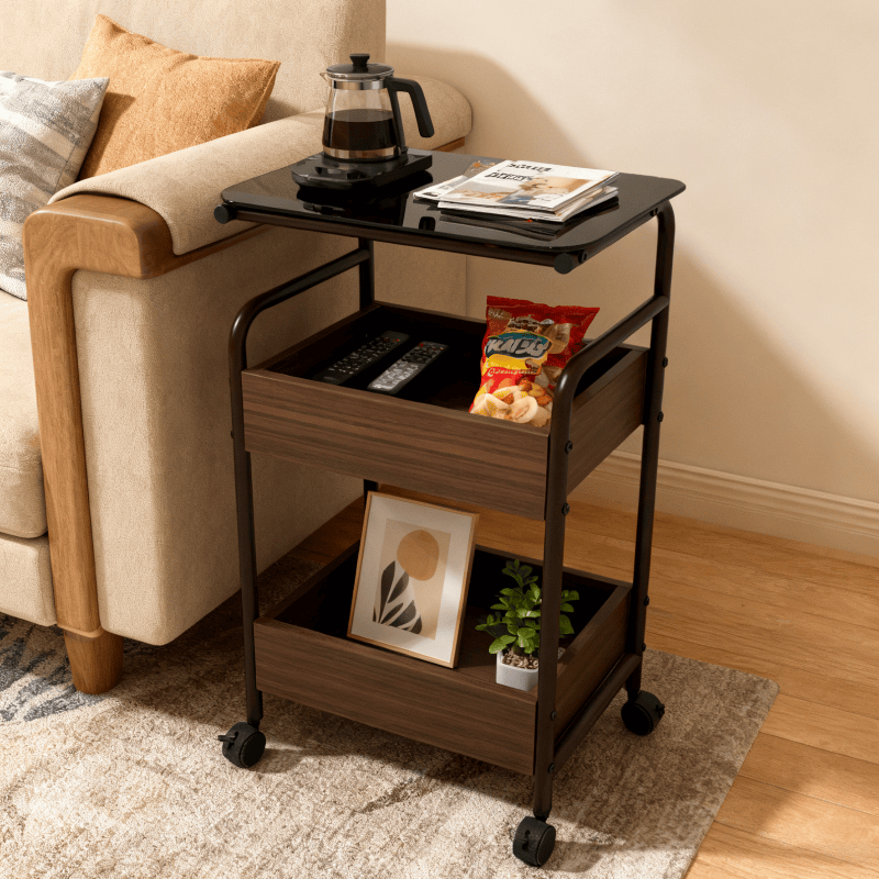 Divano moderno da soggiorno con tavolino mobile e carrello da cucina multistrato