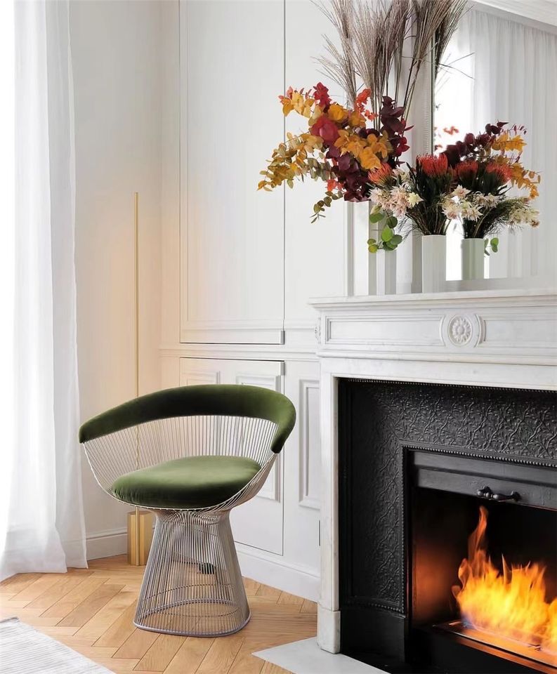 Modern Lounge Dining Chair Fabric Leather Cushion Stainless Steel Frame Anti Rust Dining Armchair