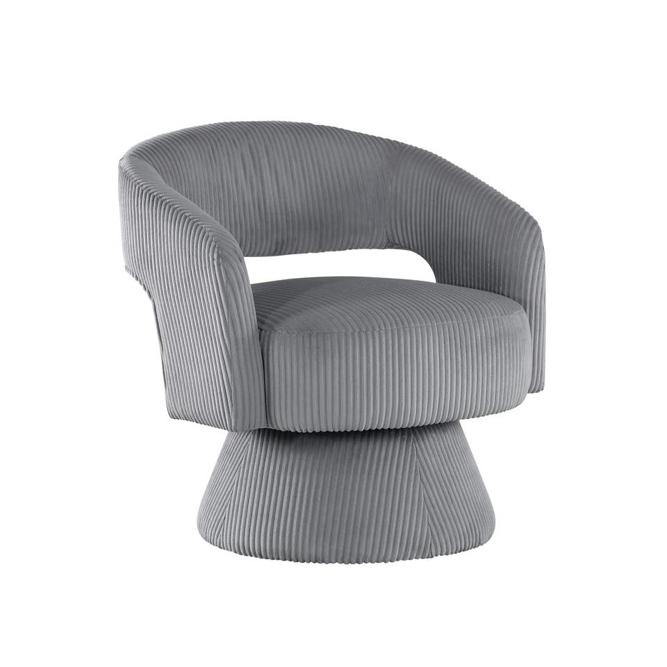 Poltrona Girevole Moderna e Lussuosa in Velluto a Coste Grigio Scuro con Seduta Imbottita in Legno Massello per Arredamento Elegante