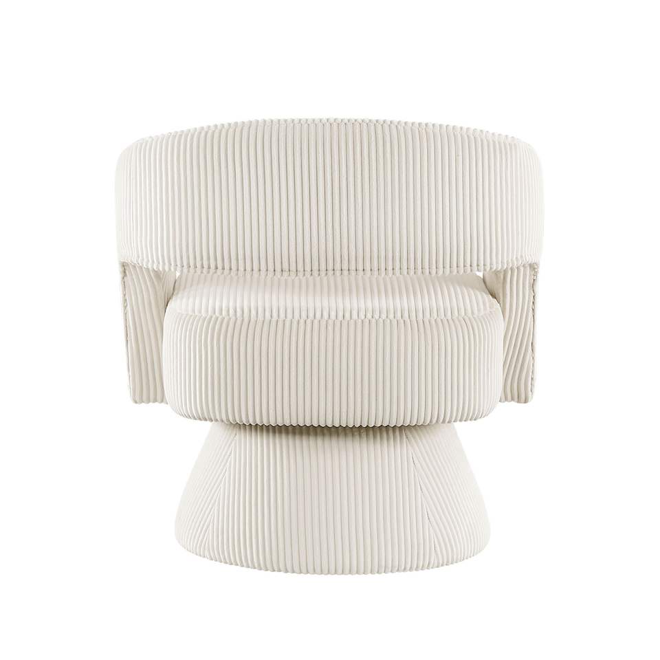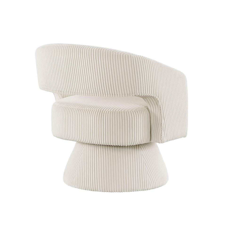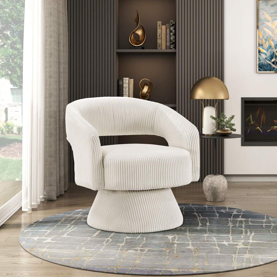 Poltrona Girevole Moderna e Lussuosa in Velluto a Coste Beige, Seduta Morbida in Legno Massello, Arredamento Elegante per Soggiorno