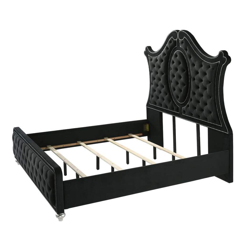Tettiera del letto con pannello a riccio nero di lusso moderno intricato rivestimento a chiodino con motivo a rombi di lusso