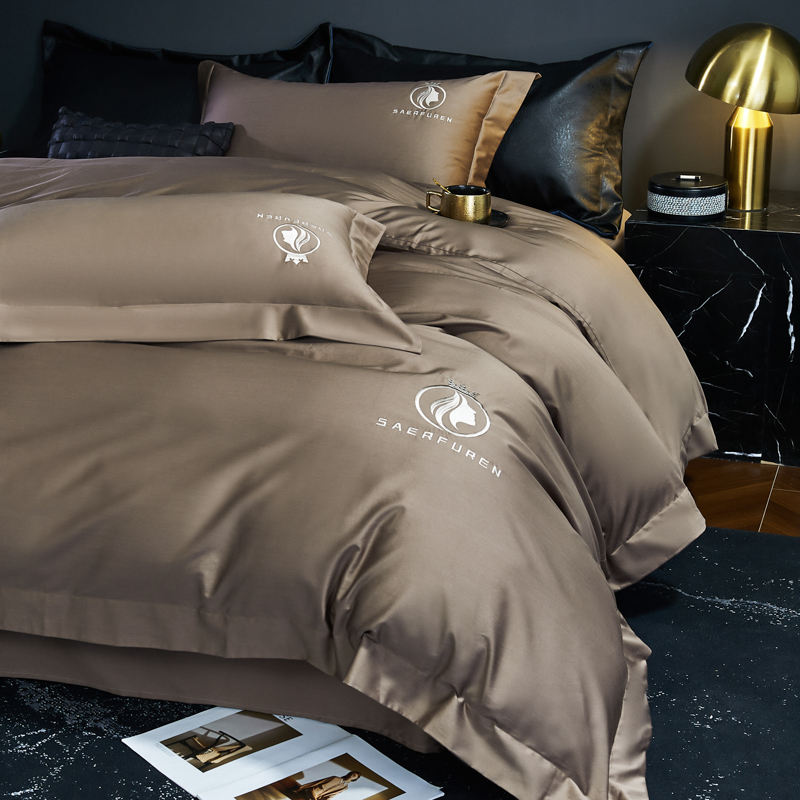 Modern Luxury Cool Silky Naked Sleep Bedding Set Four-Piece Woven Embroidery for Spring Summer