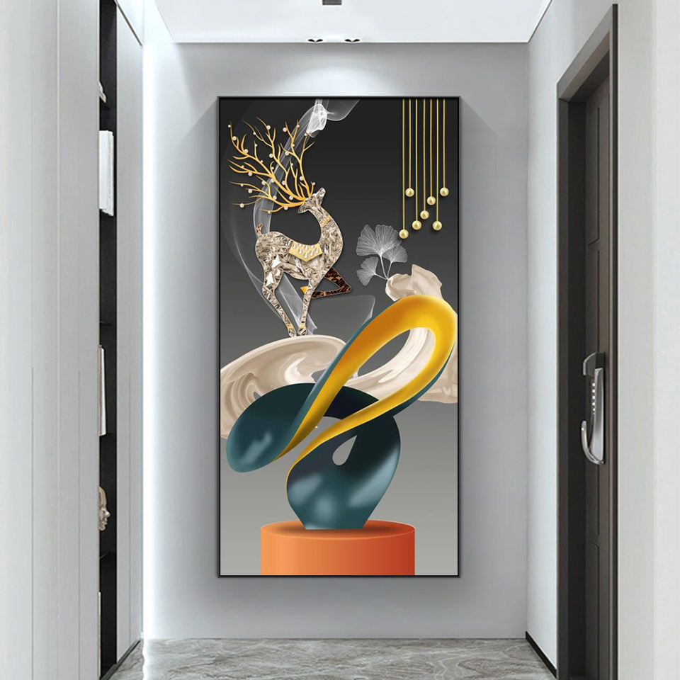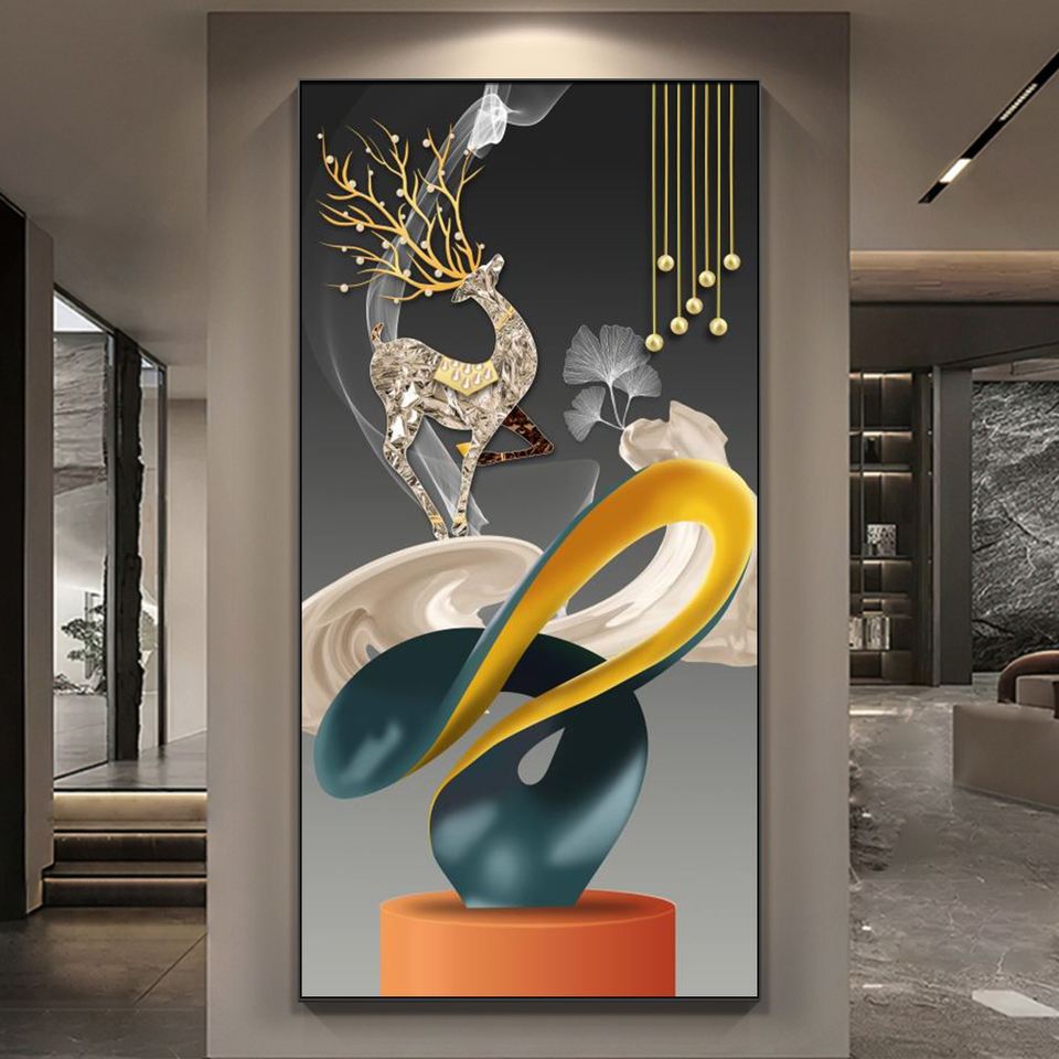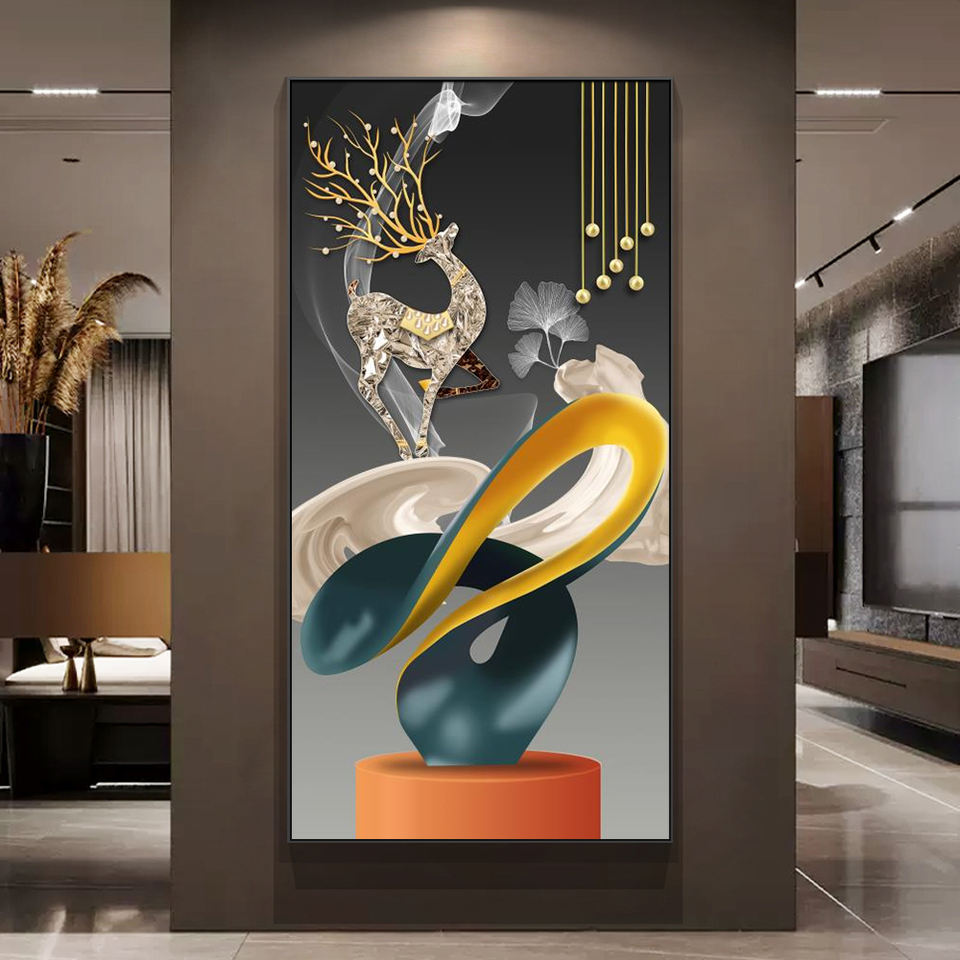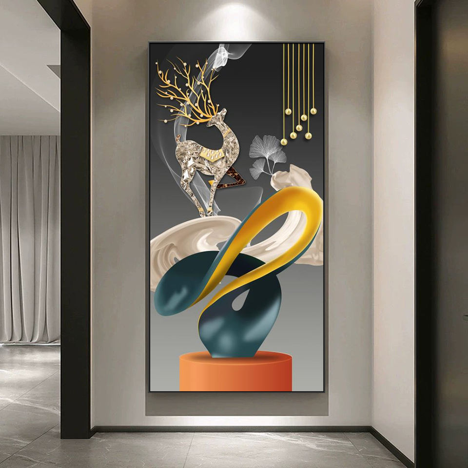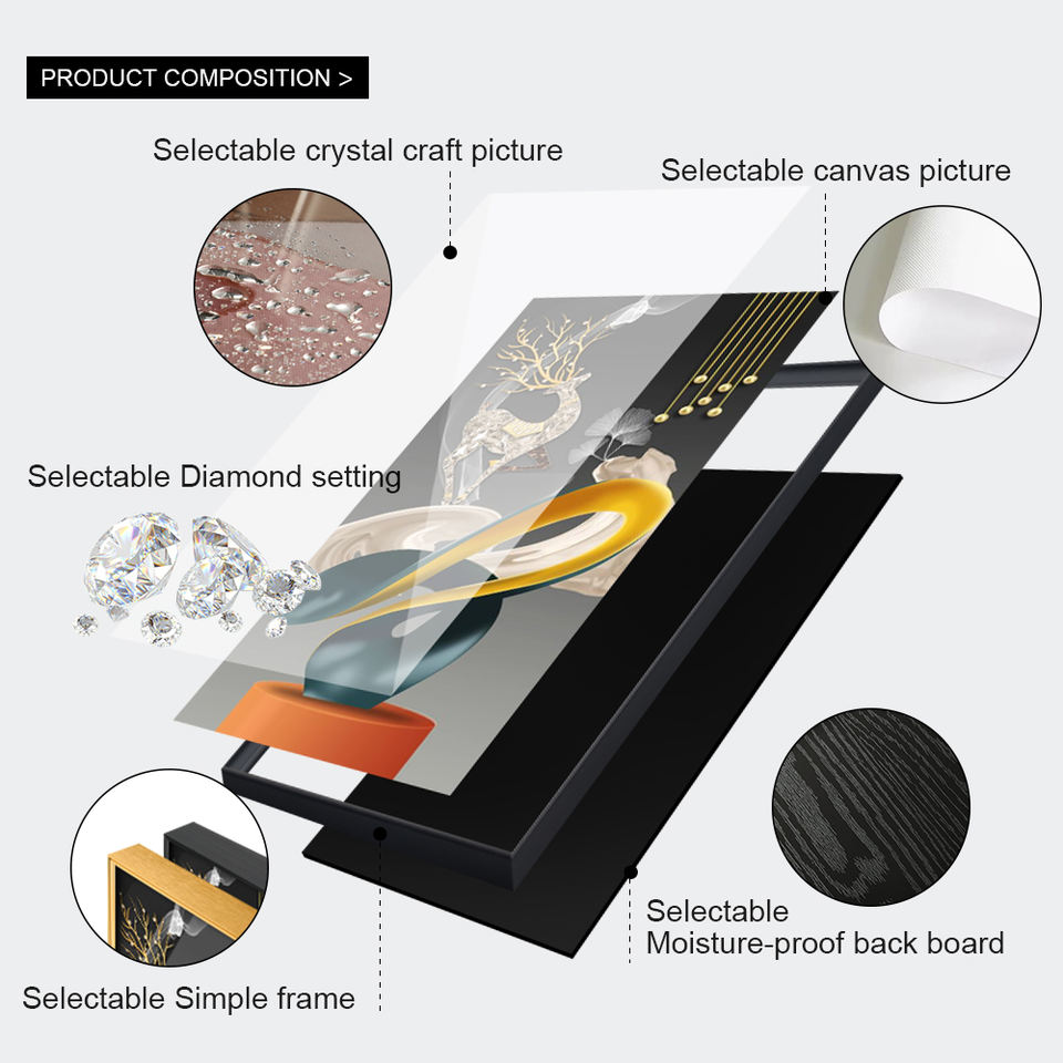 Dipinti Moderni di Lusso in Cristallo e Porcellana, Quadri su Tela, Arte Astratta Geometrica da Parete con Cornice