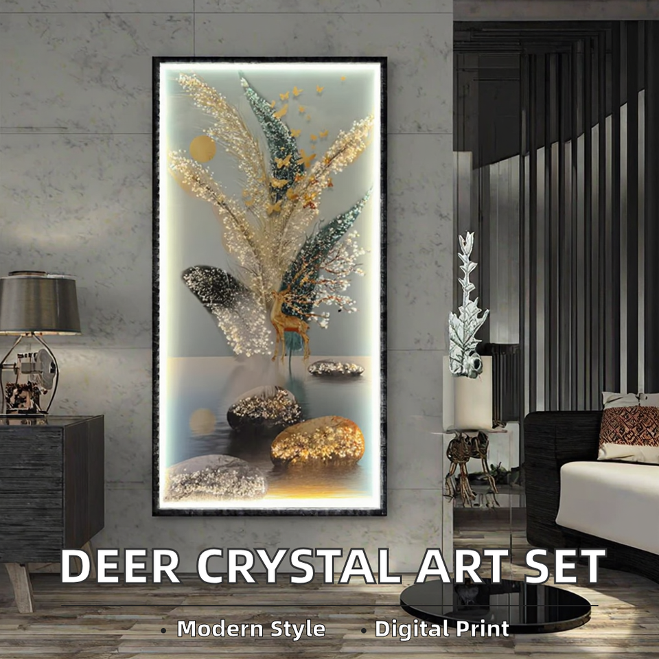 Set di Tre Dipinti in Cristallo e Porcellana con Motivo di Cervo, Arte Moderna di Lusso per Soggiorno, Decorazione Casa, Supporto in Tela, Vendita all'Ingrosso