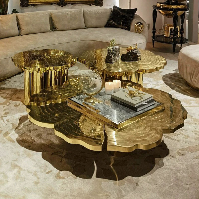 Tavolo da caffè in acciaio inossidabile alto-basso combinazione per mobili per la casa
