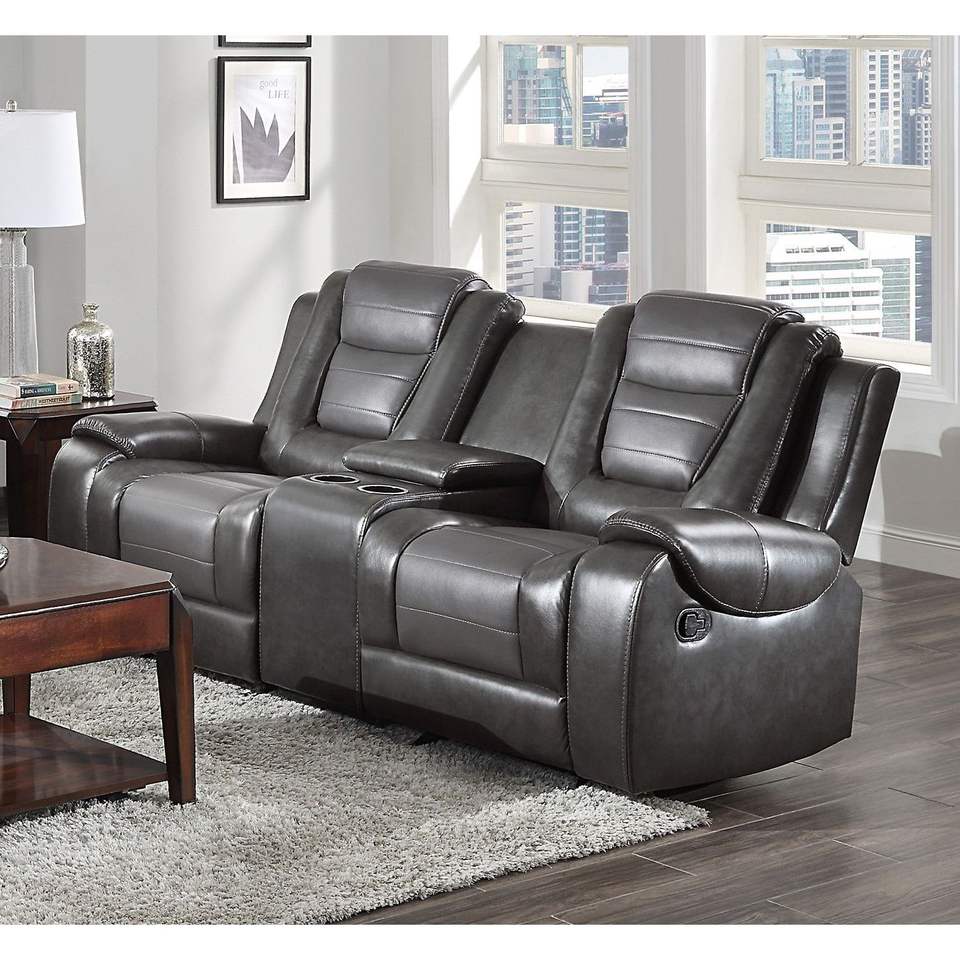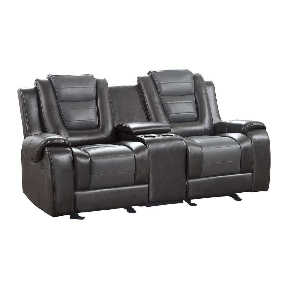 Modern Luxury Dual Glider Reclining Loveseat Center Console Formal Living Room Furniture Premium Faux Leather Upholstery