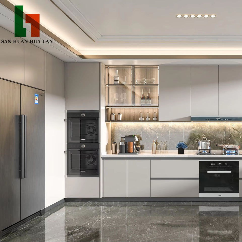 Moderni armadi da cucina europei di lusso personalizzati realizzati in fabbrica soluzione modulare One-Stop di lusso