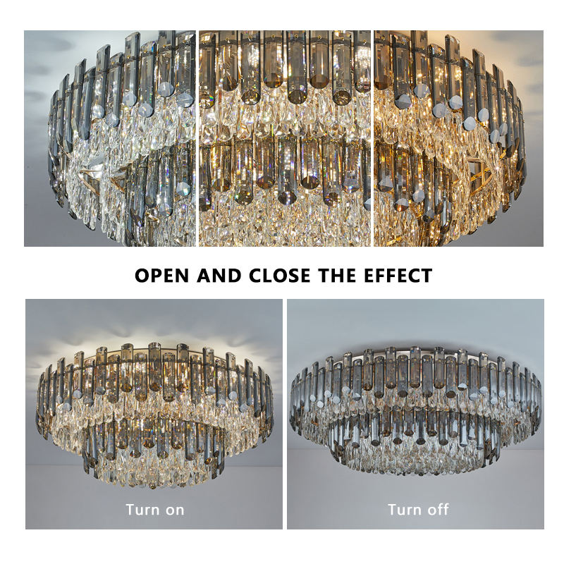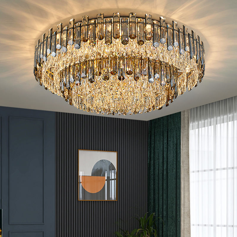 Plafoniera Moderna di Lusso Dorata Grandi Lampadari di Cristallo per Hotel Soggiorno Ristorante Esposizione