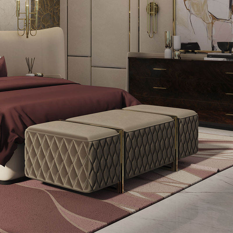 Modern Luxury Gold Stainless Steel Leg Bed Footstool Living Room, Bedroom, Cloakroom, Shoe Changing Stool