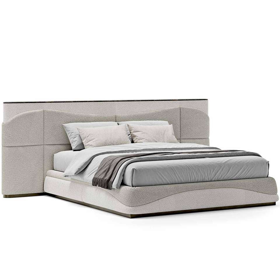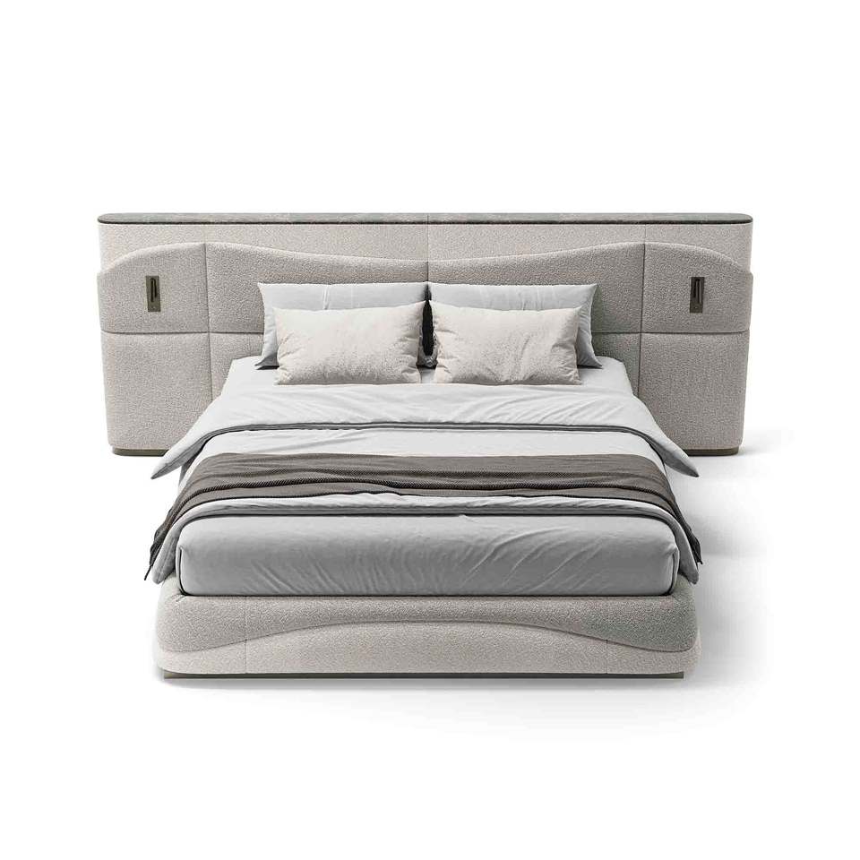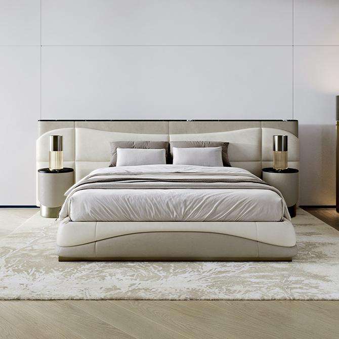 Feature:King Size Headboard, Waved Art Design, Leather Upholstered Double Bed