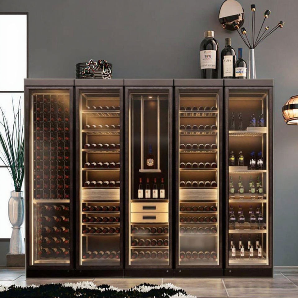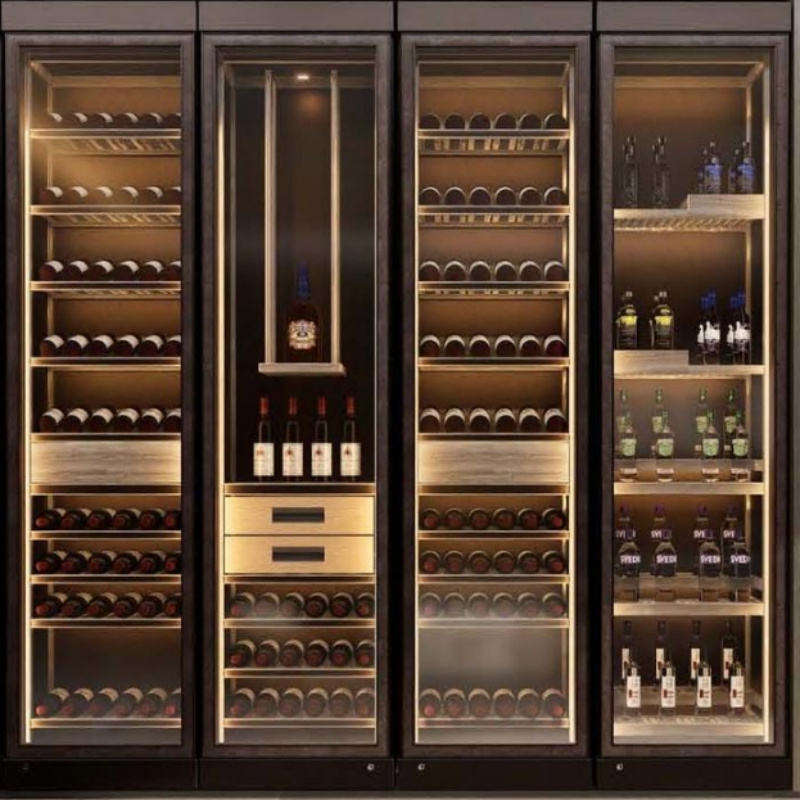 Mobile da Parete Moderno di Lusso in Acciaio Inox con LED Integrato per Soggiorno, Bar, Sala da Pranzo, Hotel - Arredamento Ecologico in Metallo