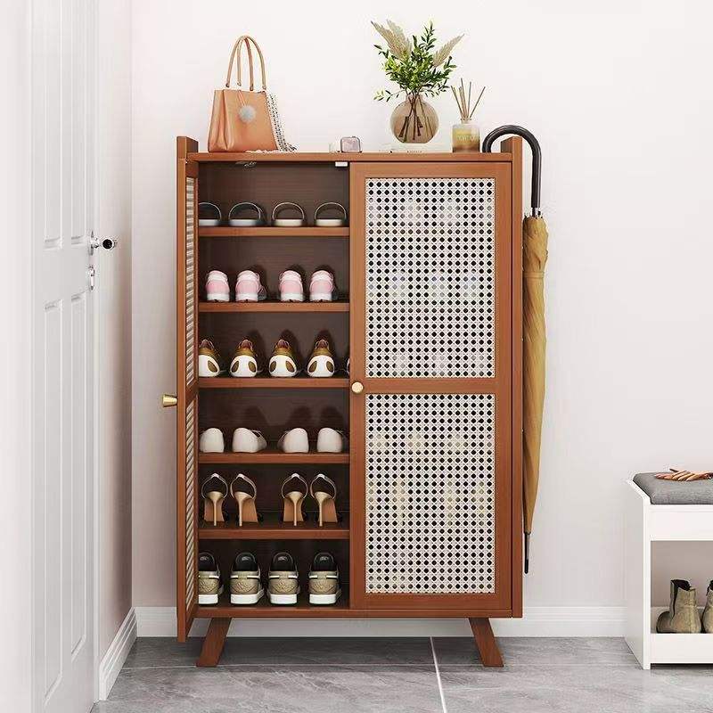 Scarpiera in bambù multistrato in stile nordico di lusso moderno con portaoggetti e portaombrelli