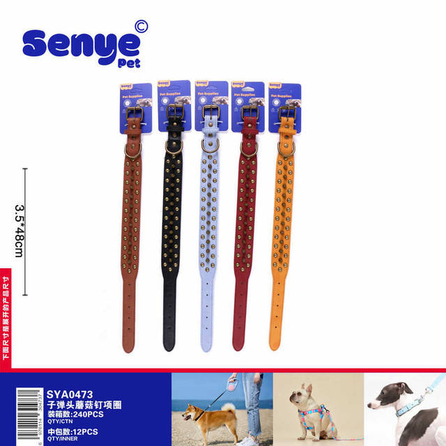 Modern Luxury PU Dog Collar with Studded Design Adjustable 3.5x48cm Multicolor Set of 12 Sustainable Leather Material for Pets