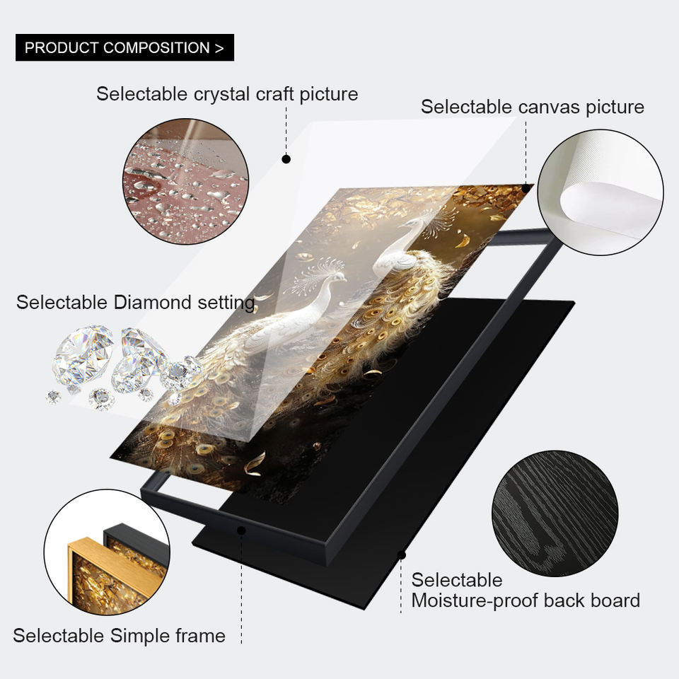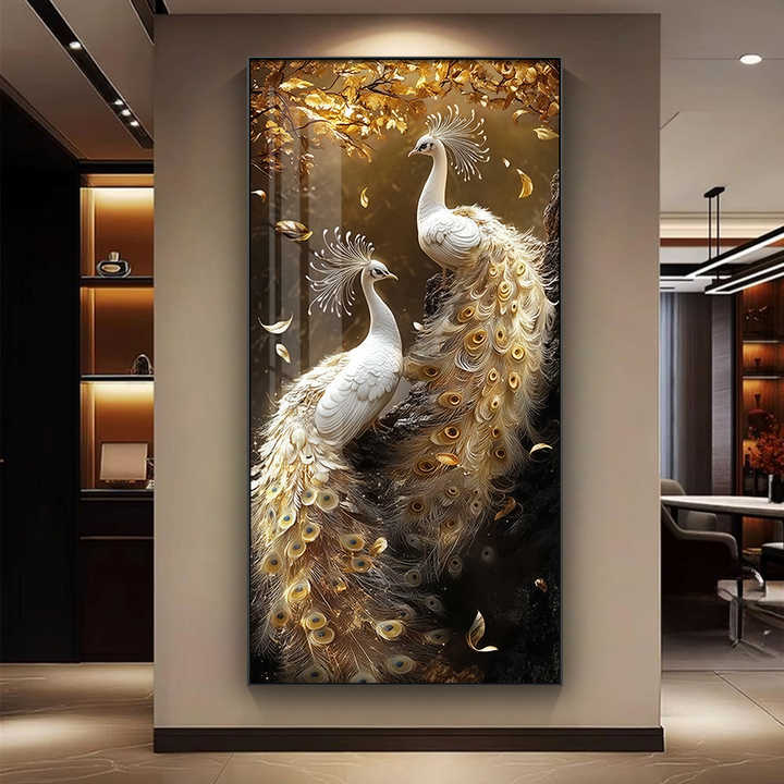 Moderno di lusso Peackok animale di cristallo decorativo di porcellana da parete arte pittura per soggiorno fabbrica all'ingrosso murale di alta qualità