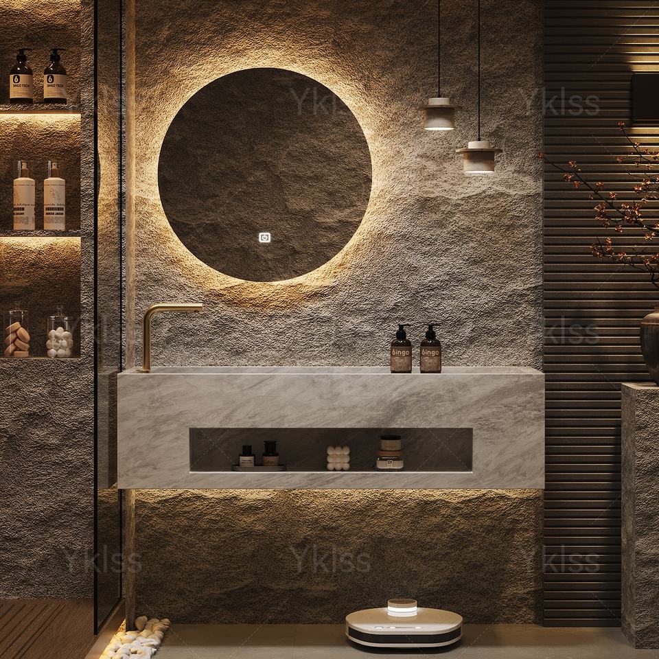 Modern Luxury Rock Slab Bathroom Cabinet with Seamless Basin Custom Single or Double Washstand Integrated Washbasin Design