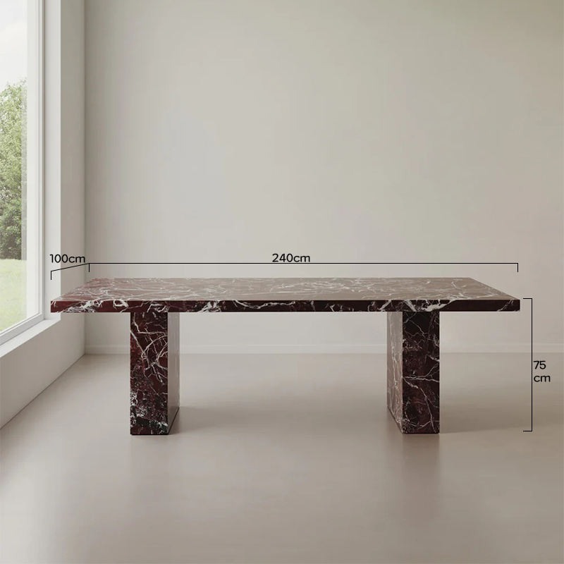 Tavolo da Pranzo Moderno di Lusso in Marmo Rosso Rosa Levanto, Design Rettangolare per Sala da Pranzo, Base per 8 Persone