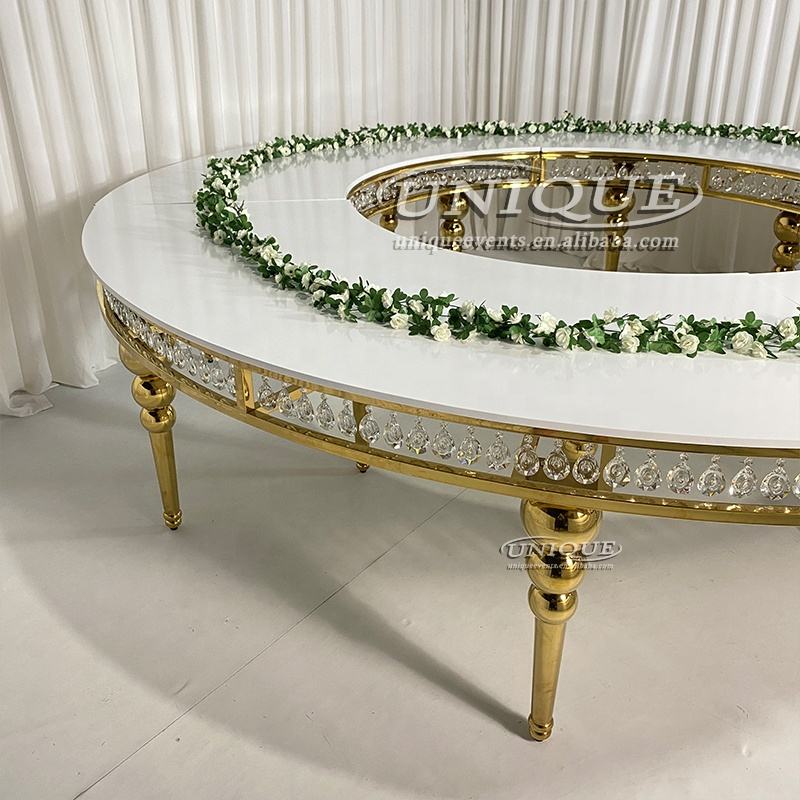 Tavolo Moderno di Lusso a Forma di S per Matrimoni, in MDF e Acciaio Inossidabile, Tavolo Circolare Serpentino con Cristalli per Banchetti in Hotel