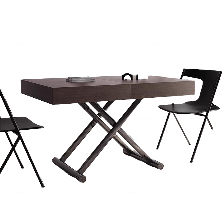 Lusso moderno semplice allungabile sollevabile in noce nero da pranzo e tavolino da caffè in stile legno per uso domestico