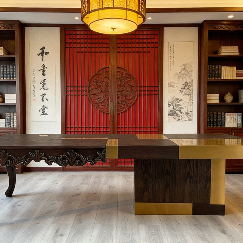 Scrivania Direzionale Moderna di Lusso in Legno Massello con Gambe Curve, Tavolo Multifunzionale per Ufficio Domestico, Postazioni di Lavoro e Sala da Pranzo