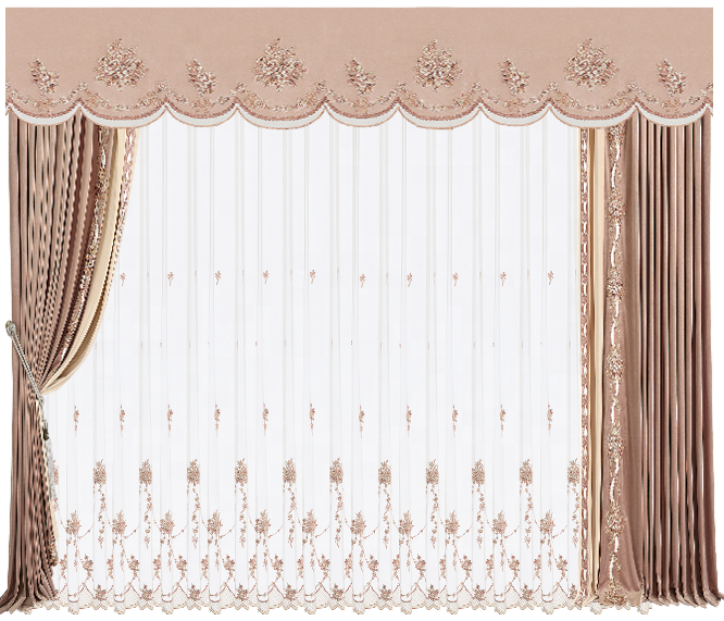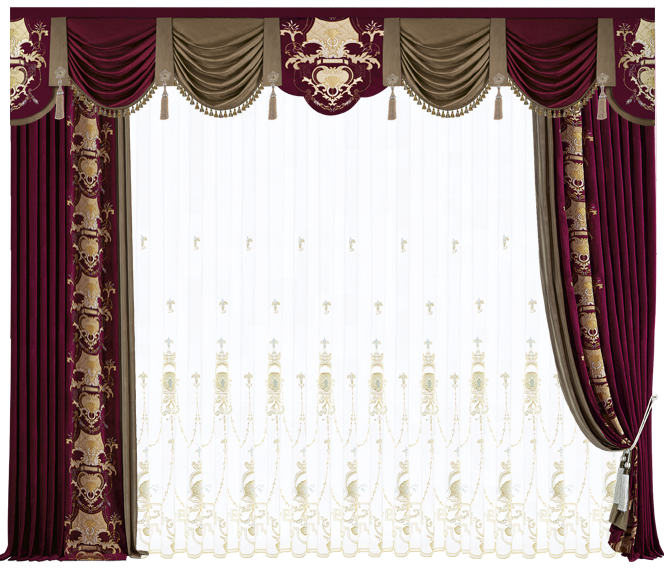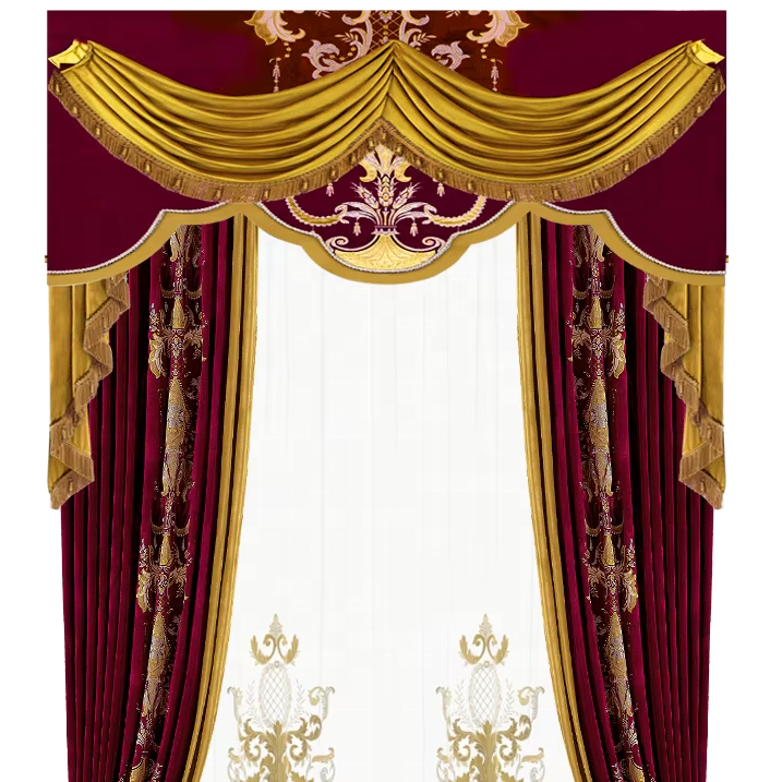 Tende Jacquard Rosse di Lusso Moderne con Mantovana in Tulle Trasparente per Soggiorno