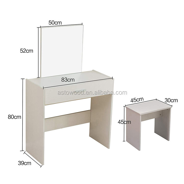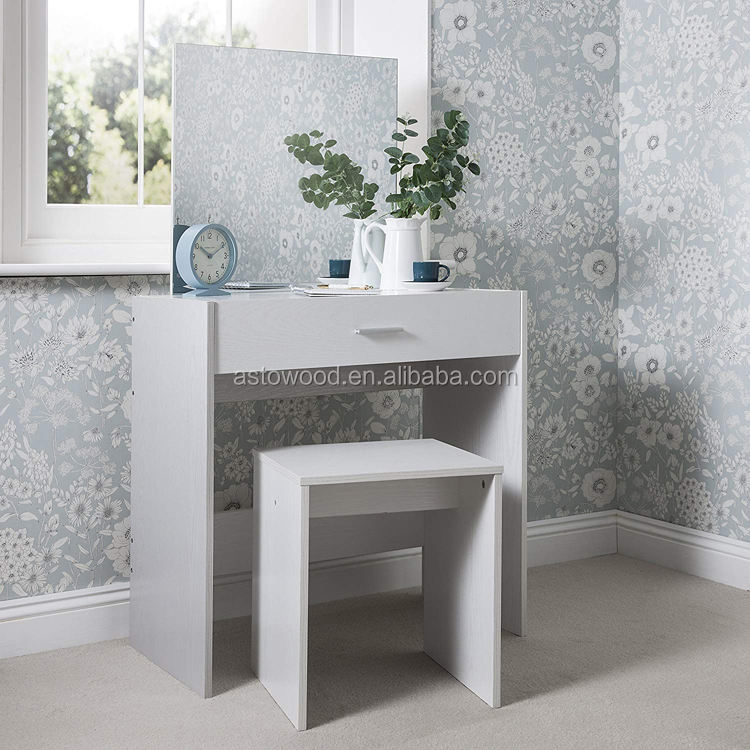 Moderna toletta MFC per il trucco con specchio e sgabello per la camera da letto delle ragazze in pannello di legno