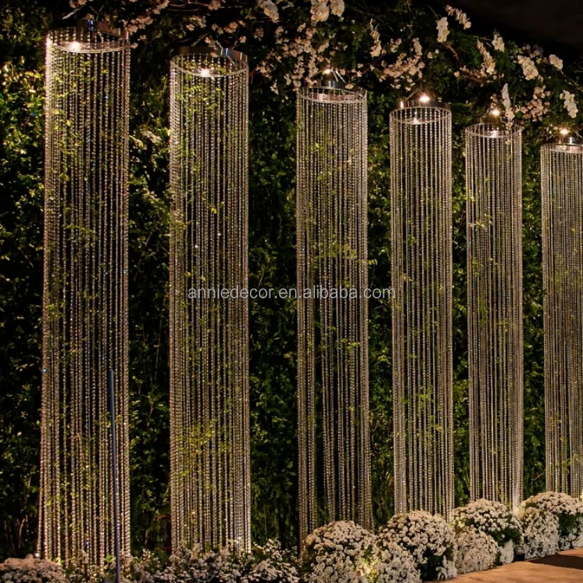 Modern Metal Round Ceiling Acrylic Crystal Bead Curtain Hanging Headed Drapes for Wedding Party Event Decorations