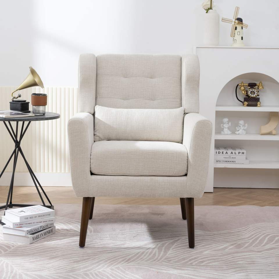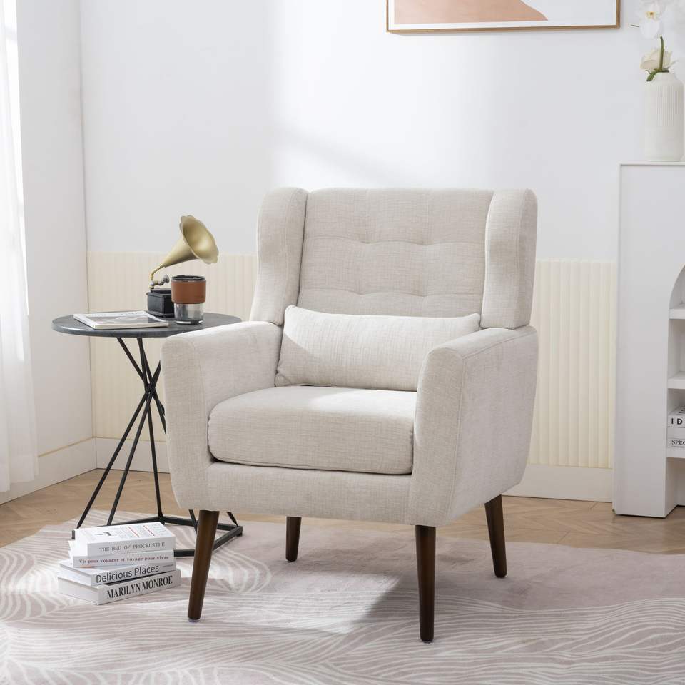 Poltrona Moderna Stile Mid-Century per Soggiorno, Comoda Sedia Imbottita in Tessuto Chenille con Schiuma per Lettura