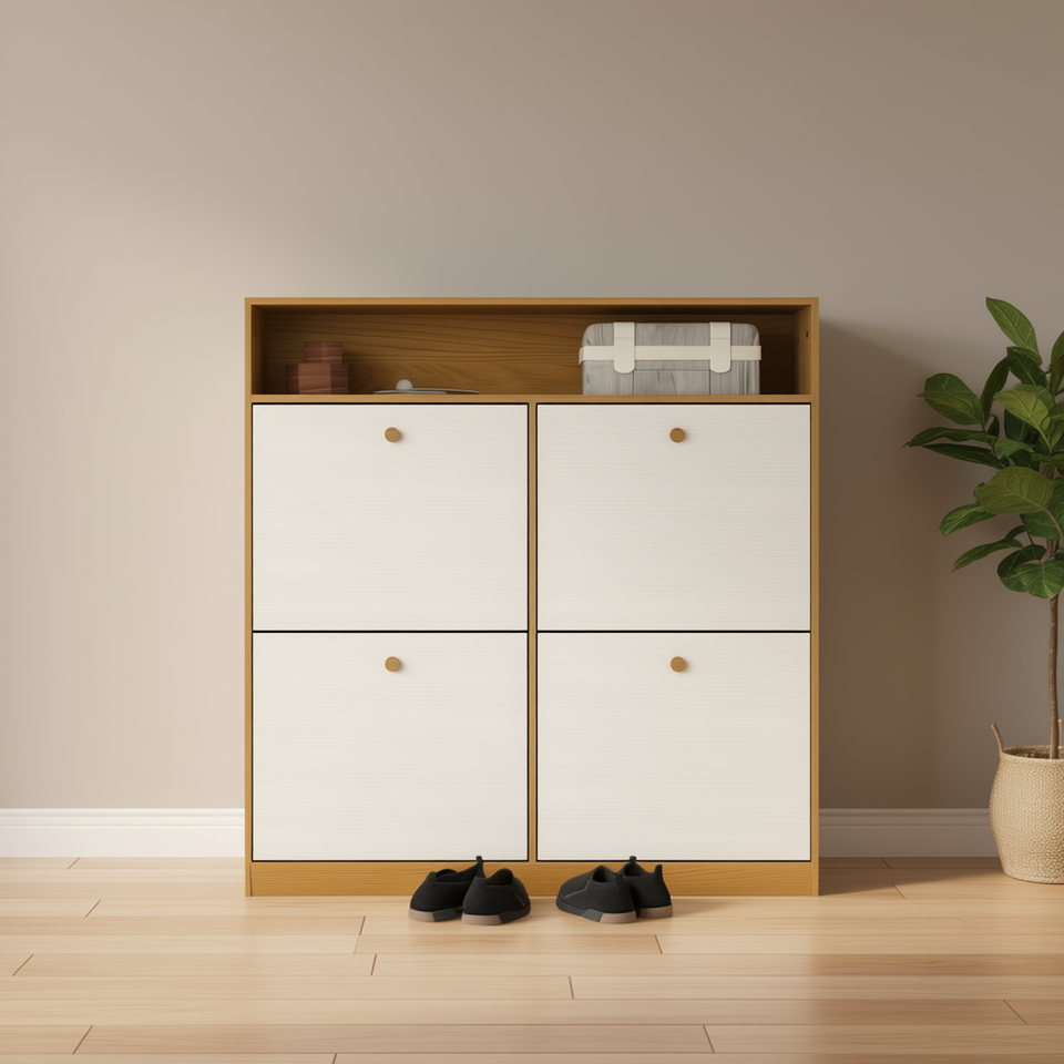 Scarpiera Moderna Minimalista a 4 Cassetti con Design Anti-Ribaltamento per Ingresso, in Truciolato di Noce, Mobile Autoportante