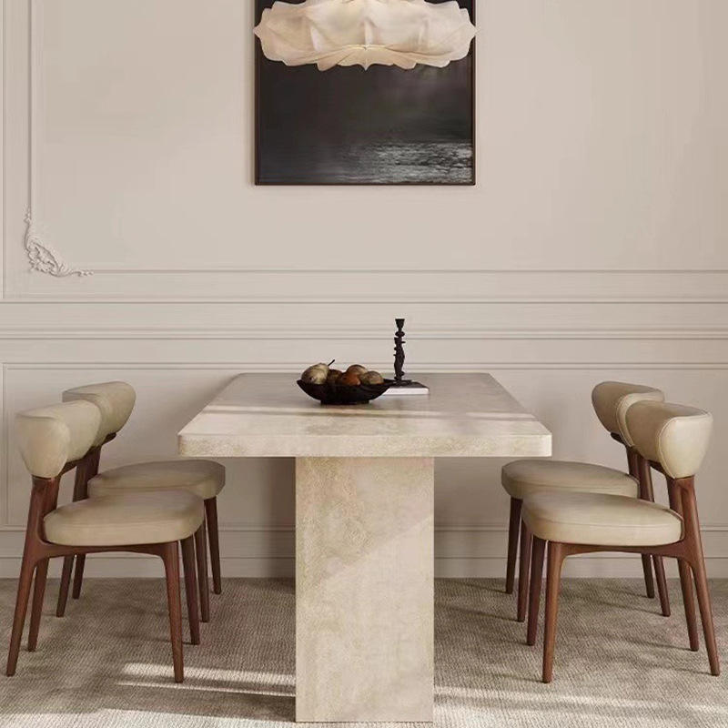 Tavolo da Pranzo Moderno Minimalista in Bambù con Piano in Pietra Sinterizzata, 2 Posti, Dimensioni Personalizzabili, Forma Rettangolare per Sala da Pranzo