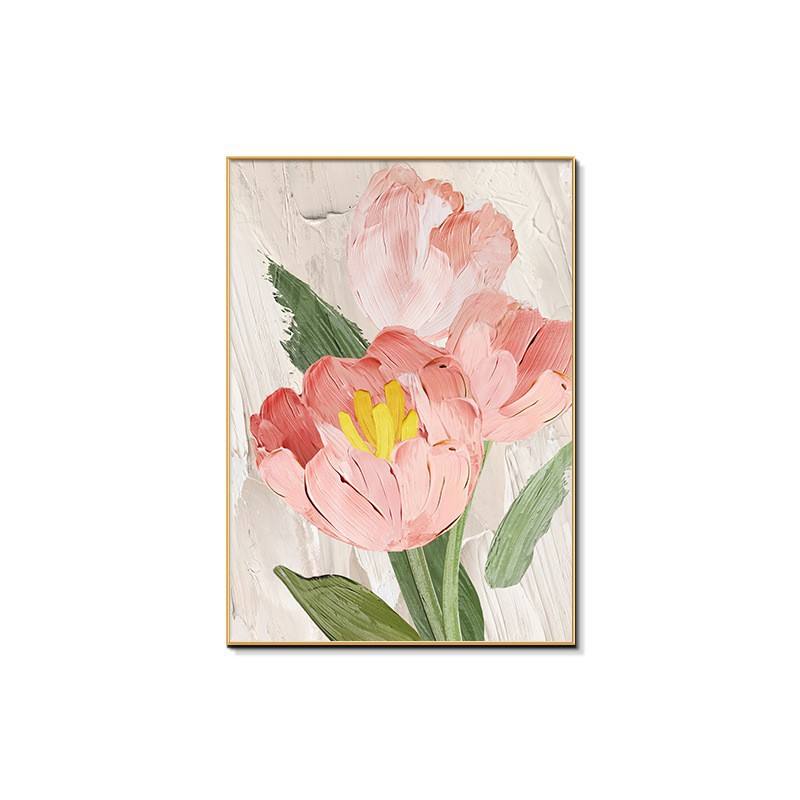 Dipinto Decorativo Moderno Minimalista Stile Crema con Fiori di Tulipano, Quadro Incorniciato Fluttuante per Arredamento Soggiorno