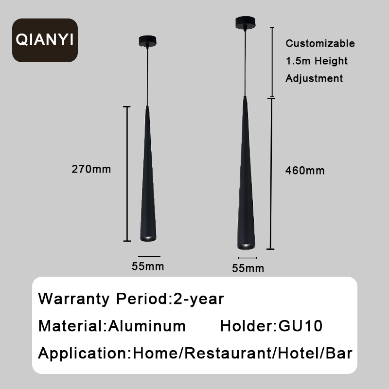 Lampada a Sospensione a LED Moderna e Minimalista in Alluminio Nero o Bianco, Lampade Cilindriche a Tubo per Casa e Ufficio