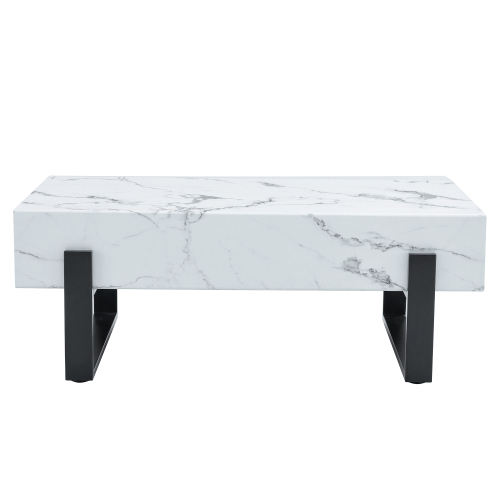 Modern Minimalist MDF Coffee Table Marble Pattern Sticker 47.2x23.6 Black White Black Metal Leg Spray Coating Simple Style FCJ
