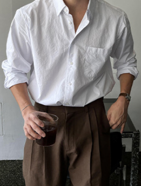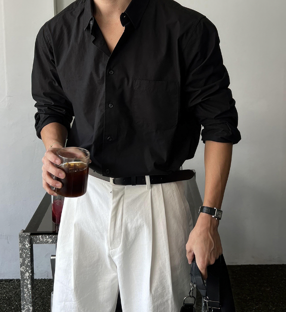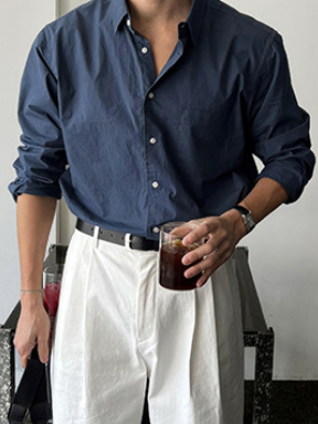 Moderna maestry minimalista abito in lino camicia blu scuro abbinata pantaloni a vita alta accessori neri senza sforzo rilassato