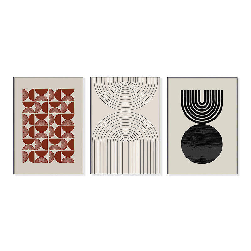 Quadro Moderno Minimalista Nordico Boho Decorazione Murale Dipinto Geometrico Bianco e Nero su Tela con Cornice