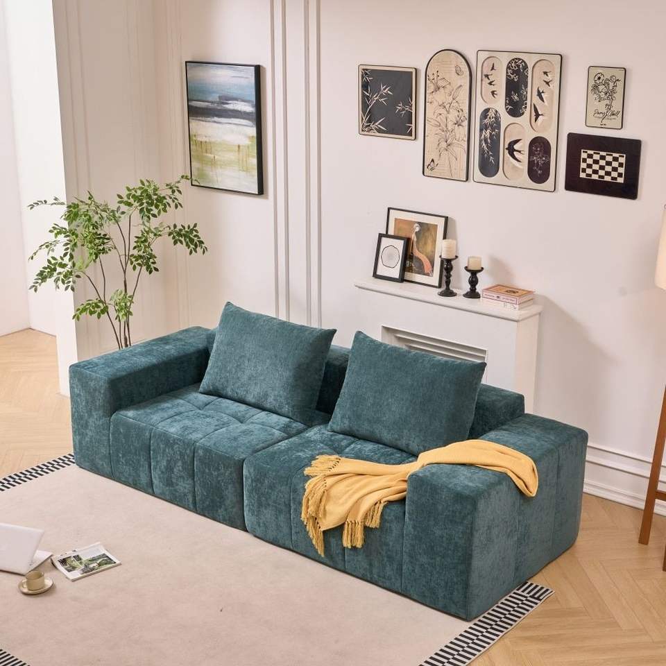 Divano Moderno Minimalista Stile Schneier con 2 Cuscini, Verde, per Soggiorno o Ufficio