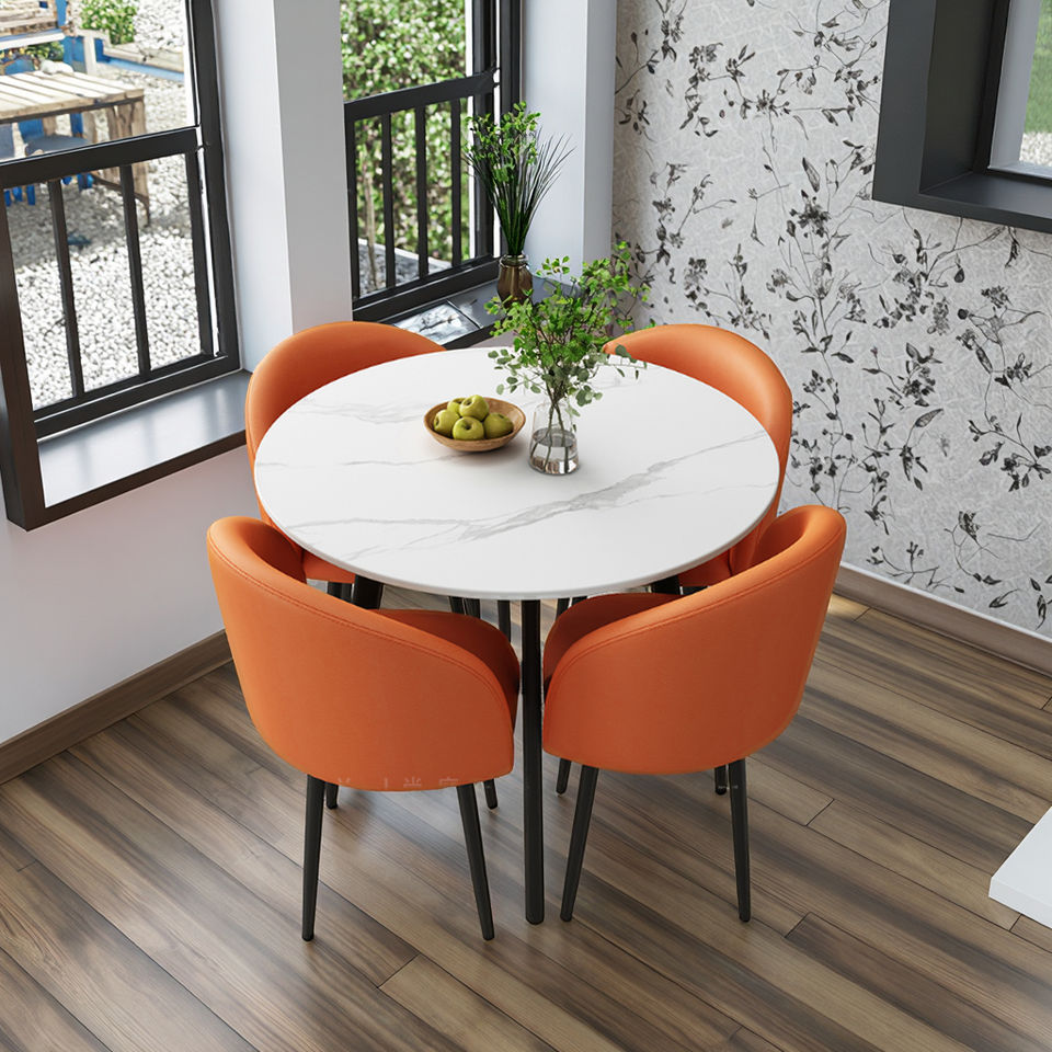 Set Moderno Minimalista di Tavolo Estensibile in Legno e Sedie per Reception, 4 Posti, Arredamento per Negozi di Tè e Uso Commerciale