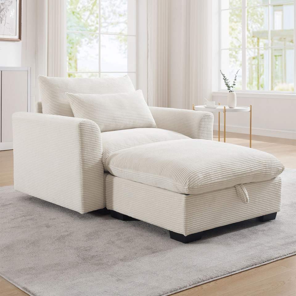 Divano Modulare Moderno in Velluto a Coste Beige con Pouf Contenitore Profondo per Soggiorno, Appartamento, Ufficio