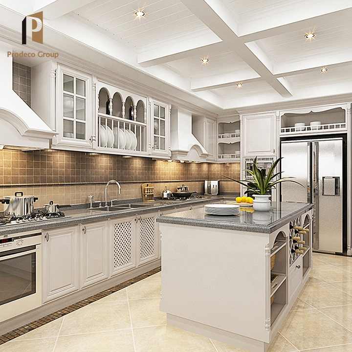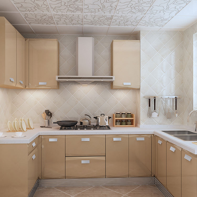Design Moderni di Mobili da Cucina Modulari con Piano di Lavoro in Marmo Artificiale, Cerniere e Cestelli per Piccole Cucine