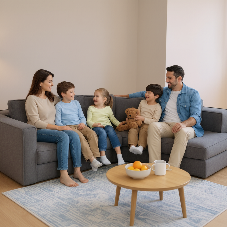 Divano Componibile Moderno a Forma di L in Tessuto con Seduta Profonda per Soggiorno, Beige Grigio Fumo D0100XFPDAY