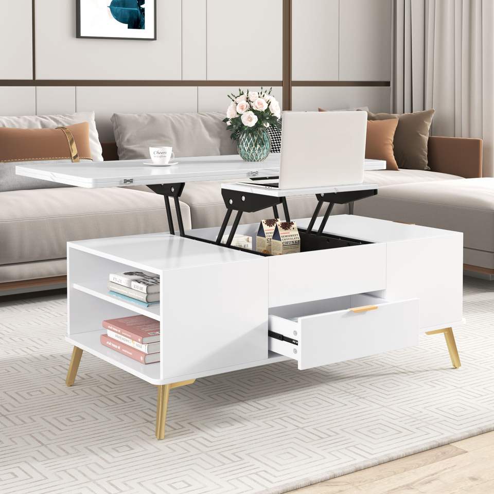 Tavolino da Caffè Moderno Multifunzionale con Piano Sollevabile e Cassetti, Arredamento Versatile