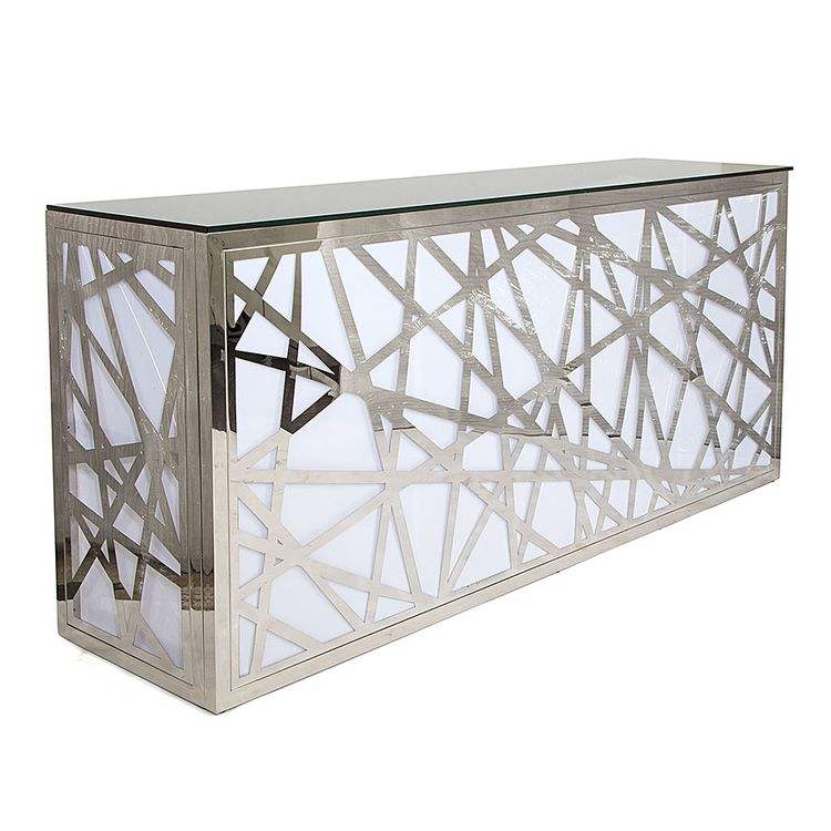 Modern Multi-face Silver Stainless Steel Black Glass Top LED Light Bar Table for Bar Wedding Rental