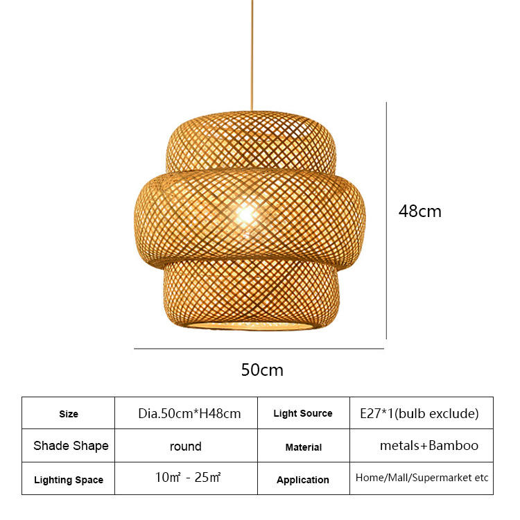 Lampadario Moderno in Bambù Naturale E27, Lampada a Sospensione in Rattan con Paralume in Legno