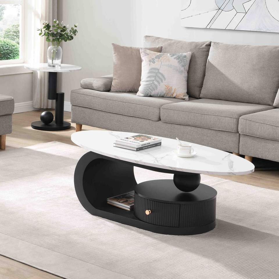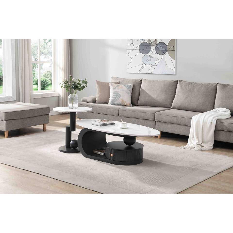 Set di 2 Tavolini da Caffè Moderni, Ovali e Rotondi, per Soggiorno