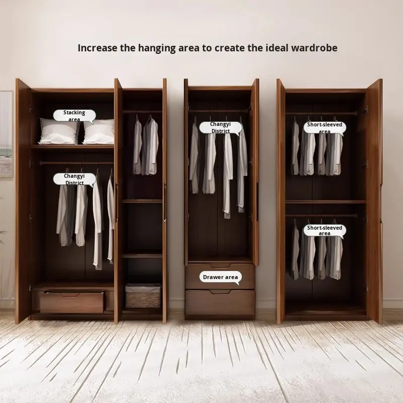 Armadio Moderno in Stile Nordico in Legno Massello a Due Ante Mobili per Camera da Letto con Guardaroba in Rovere per Soggiorno
