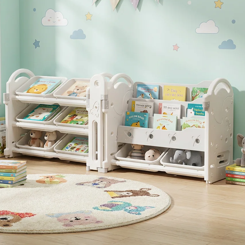 Moderno Organizzatore per Libri e Giocattoli a 3 Ripiani in Plastica Rimovibile per Asilo