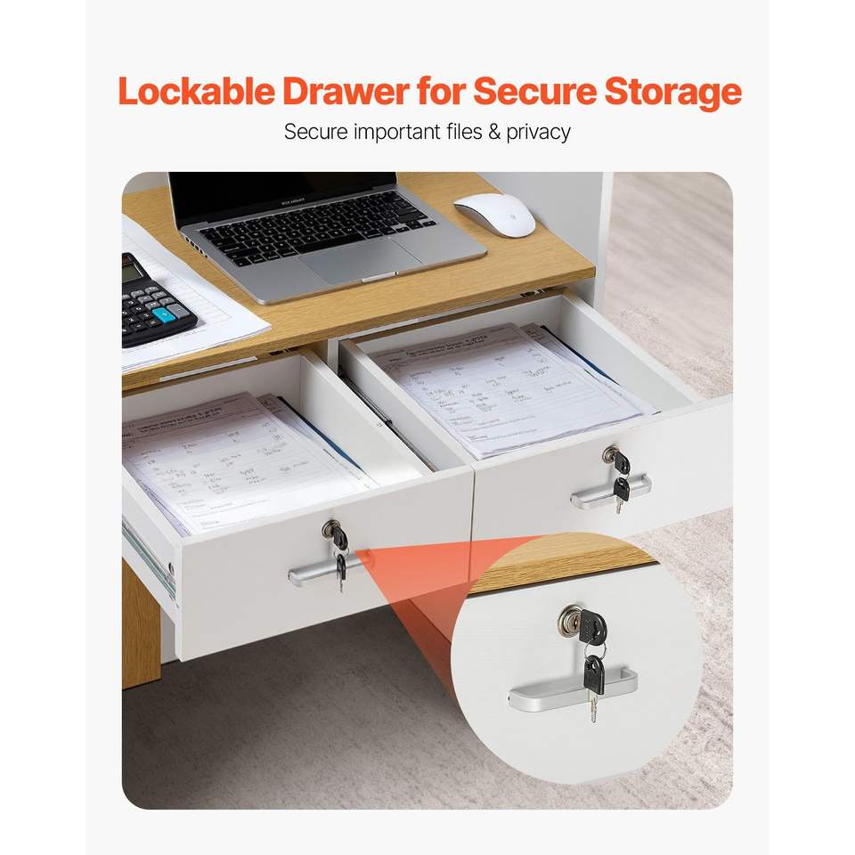 Moderna Scrivania da Reception per Ufficio, 80 cm, Rettangolare con Luce LED Frontale, Bancone con 2 Cassetti e Presa di Corrente