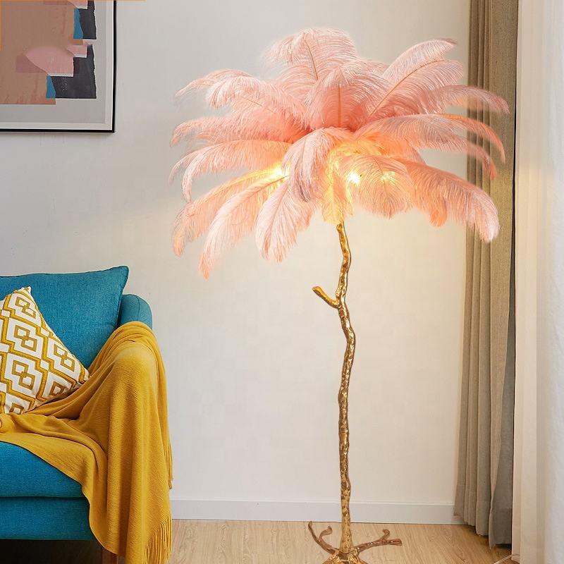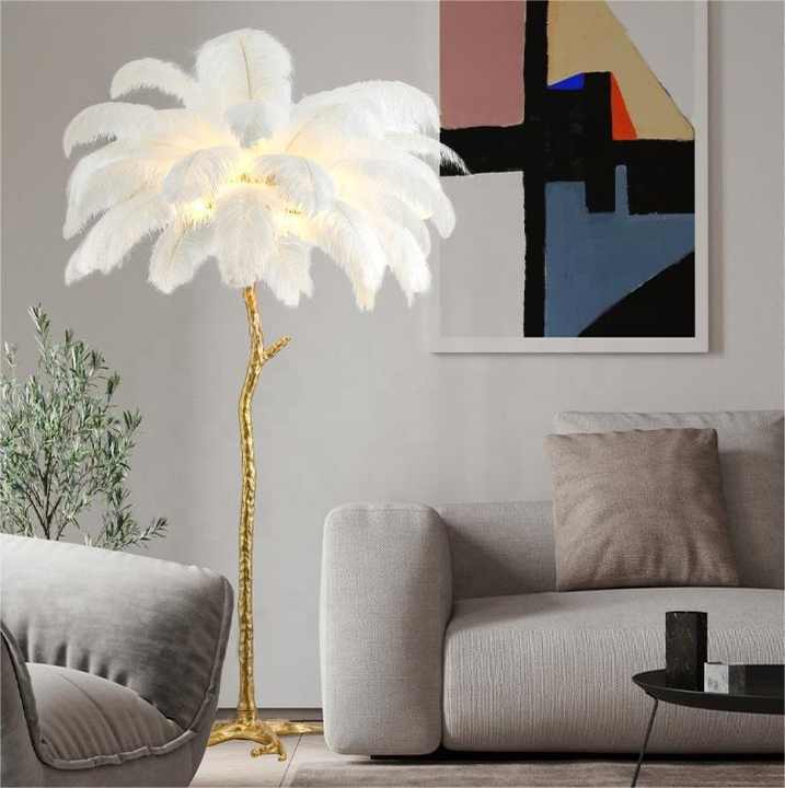 Modern Postmodern Ostrich Feather LED Floor Lamp with Foot Switch Control High CRI 95 for Living Room Bedroom Home Hotel Decor