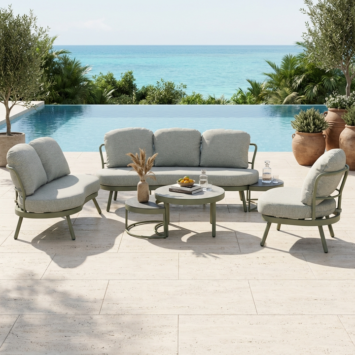 Modern Outdoor Aluminum Sofa Set 6 Piece Patio Lounge Furniture with Powder Coated Aluminum Frame